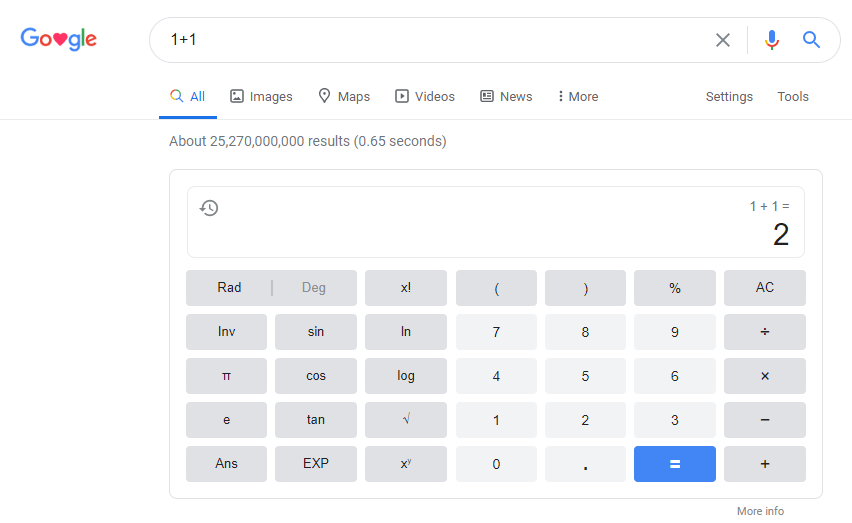 One of google’s great features is that is can perform basic math functions in the actual search field. This can be useful during quick calculations. Also, once you search your expression, and depending on the equation, it will include an applicable calculator.